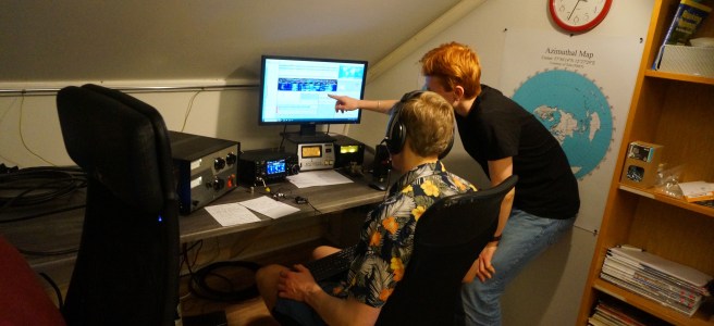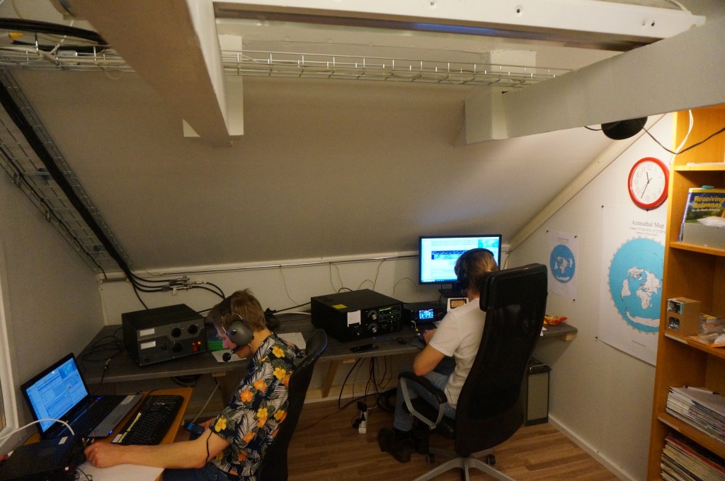 Värmen från tre slutsteg höll klubblokalen varm hela helgen! Hela ungdoms-sektionen var på plats, plus en inbjuden ungdom! Redan helgen innan utfördes antennarbete och provkörning. Ambitionen var att hålla tre stationer igång parallellt – s.k. multi-multi operation. För att detalj lyckas måste signalerna separeras, så att harmoniska övertoner inte stör ut mottagarna.
